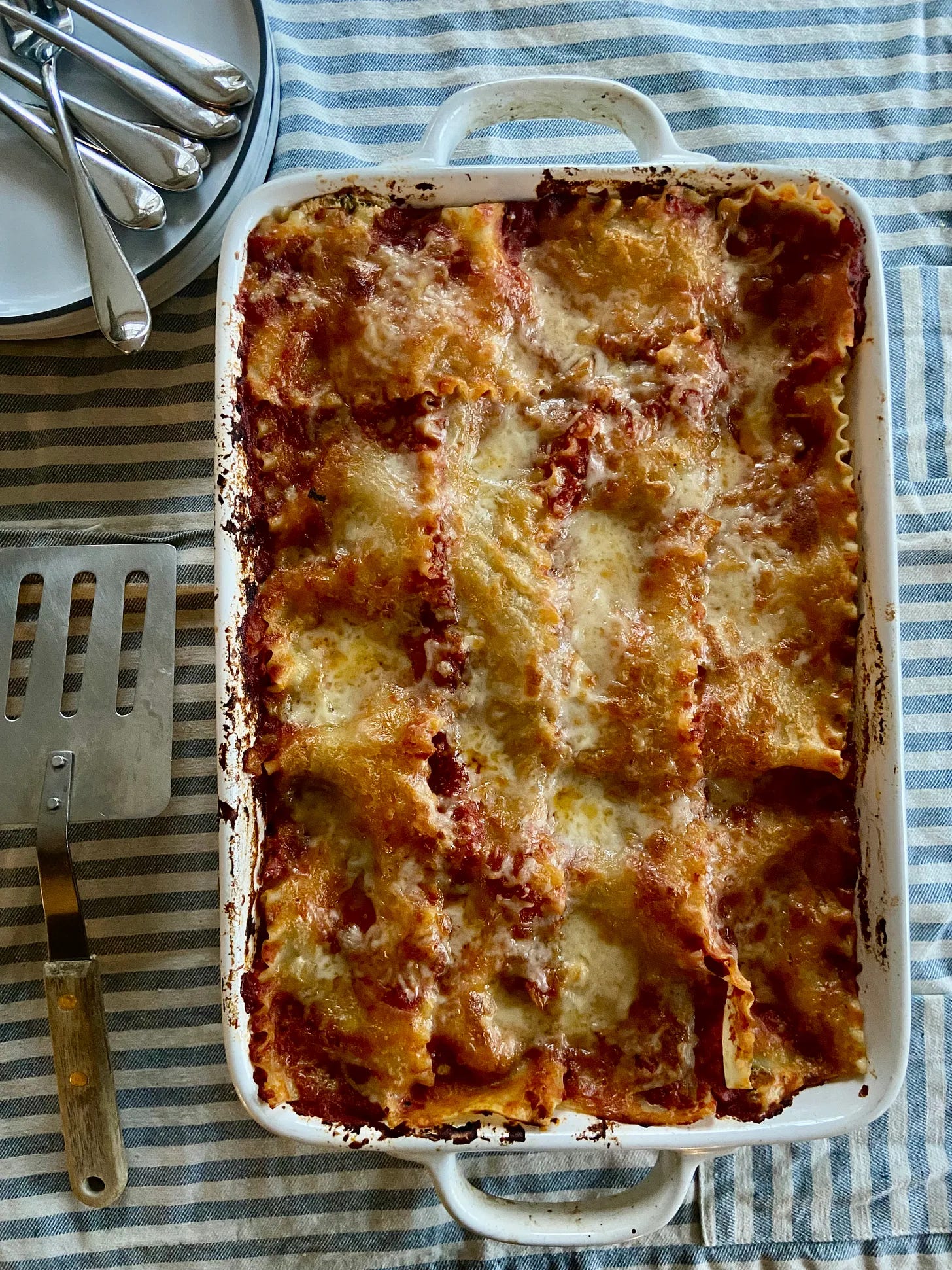 The other week, I made My Mom’s Lasagna for an elderly neighbor who has been dealing with health issues and some heavy grief in the past few months. And I tell you this not because I would like you to congratulate me, but because I was reminded, yet again, of an amazing, if kinda selfish thing that happens when you cook for someone else: The comfort flows in both directions. My neighbor, of course, was grateful, as were her sons and grandchildren who were also able to benefit from the drippy, cheesy offering. But I — me — felt a profoundly therapeutic privilege being there for her. I know none of this is breaking news to anyone, and there are all kinds of ways to show up for people besides dropping off food. But in case you happen to be looking for an excuse to show up for a neighbor, I have unlocked my mom’s recipe from the archive. So think about it: Who could use a lasagna in their life? It might even be you, plus a few of your people, who can be at your place by 7:00.