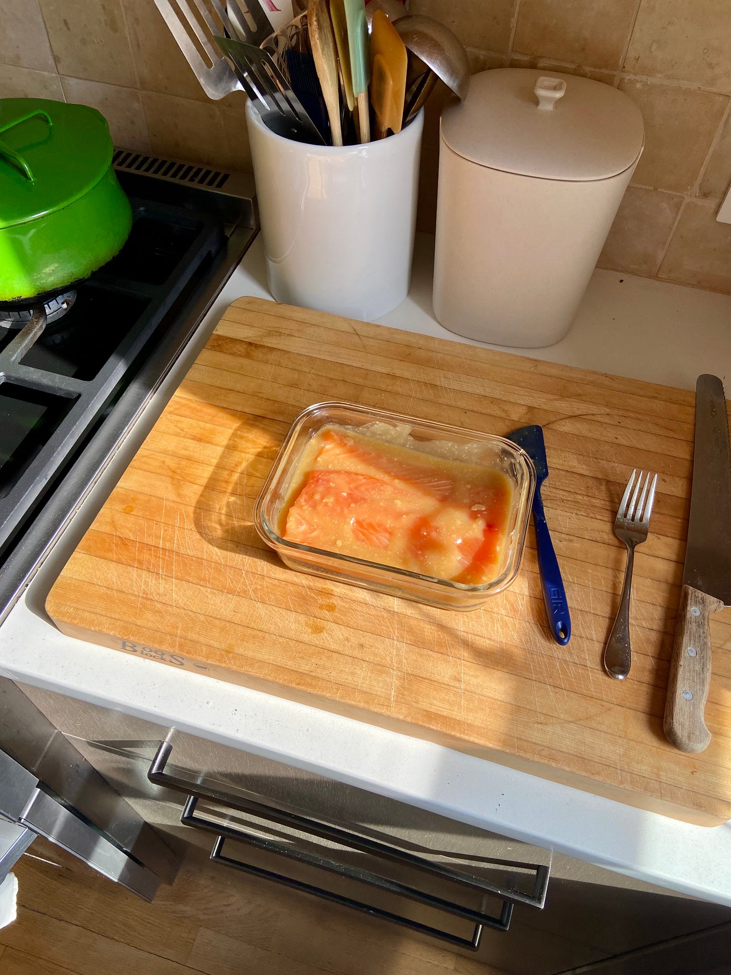 We went through a Miso-Marinated Black Cod phase two decades ago, right around the time Nobu Matsuhisa’s L.A. restaurant made it famous. (Or well, made it famous in this country at least.) It was the kind of recipe that felt like magic — a piece of fish marinates for three days before being broiled or grilled, and the result is a deeply sweet-and-savory flavor with an almost buttery texture. I used to love serving it to people for the first time because inevitably the reaction was confusion, followed by a reverent silence, followed by a What TF am I eating and why is it so good? As I type this I am sure you are doing the math: If I shop now, marinate in an hour, then maybe I can have it by…the weekend? You can and you should, but also know that there’s a world where you can have an adjacent experience without the wait. Perfect being the enemy of good and all, I whisked up the same marinade last weekend, let a salmon filet steep in it for most of the day, made rice and a quick Bok Choy with Sesame-Soy Dressing then sat down to a perfect Sunday dinner.