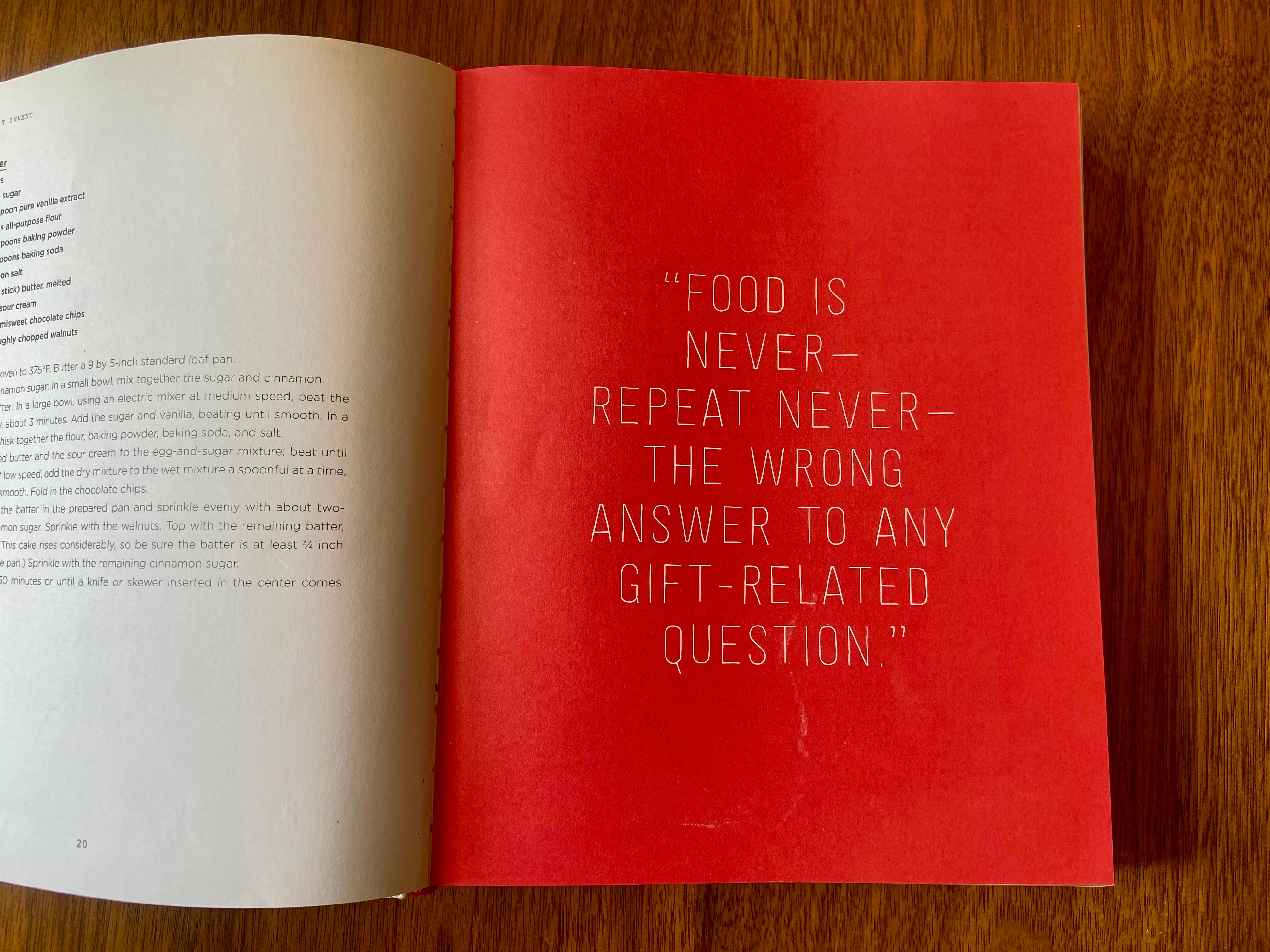 Last week, I had the great honor to join food writing veterans Lukas Volger and Elinor Hutton on SALT PIG: A Home Cooking Podcast. The topic was Food Gifting, a subject near and dear to my heart, and I found that even though we touched on a lot — what to give someone who has just had a baby or who is going through something tough, or who is just hosting dinner — I looked at my preparation notes afterwards and realized we barely scratched the surface. So please go listen to it, download all of their wisdom, then come back here to cut and paste these prompts into your notes app. Hopefully they will serve to remind you that when the question is What should I give? The answer, almost always, is food.